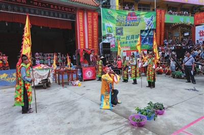 “土”味十足的山歌表演则是老年朋友的最爱,虽然天气炎热,大家还是兴致勃勃观看演出,不时拍手叫好。
