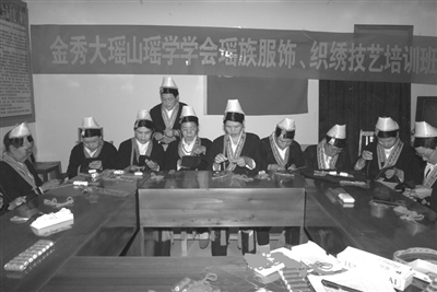 5月23日,来自金秀瑶族自治县罗香乡罗运村委各村屯的20多名瑶族妇女代表,在村委免费接受该县民族局和乡文化站联合举办的瑶族织绣技艺培训。