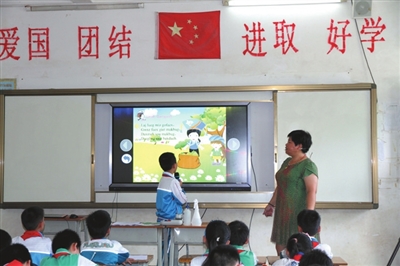当天,调研组一行听取了该小学壮语文教师黄凤明上的一节五年级壮文课。一首迎客歌拉开了课堂的序幕。本次课堂采用了壮汉双语进行教学,授课内容为复习已学过的壮文声、韵母及拼读练习,并且学习一首新的壮语山歌歌词。学生们学习兴趣很高,积极回答老师的提问,课堂氛围非常活跃。班上一名学生告诉记者:“这样上课既能学唱山歌,又能学习壮文,真的很好玩,我们都非常喜欢这种上课方式”。紧接着,调研组一行听取了实习生上的壮文课和汉文课,并将上课过程录制了下来。