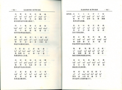 该书的译注整理采用“毛南族土俗字原行、国际音标标毛南语音和壮语音、对译、直译”的“四对照”方法进行整理。具体做法是:第一步对照原歌的土俗字原行注上国际音标;第二步对译,即一个语音、一个词语地进行汉毛南、汉壮对译;第三步是整句意译。在翻译中,侧重于译出原歌的本意,至于押韵格式则放于次位,甚至不讲究,以求最大限度保持原歌原貌,使之既适合民族歌手据之咏唱,也方便学者们据之进行学术研究。