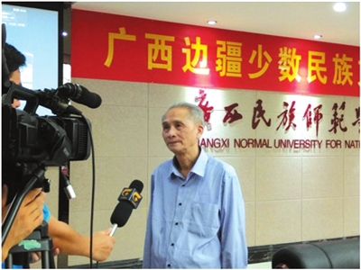 5月21日上午,第一届广西边疆少数民族文化论坛在广西民族师范学院正式开幕。本次论坛由广西民族师范学院边疆少数民族文化研究中心举办,中央民族大学梁庭望教授、李锦芳教授,广西师范大学张利群教授,广西民族大学韦树关教授、蒙元耀教授、王柏中教授,广西师范学院黄桂秋教授,广西骆越文化研究会谢寿球会长作为特邀专家出席本次文化论坛。