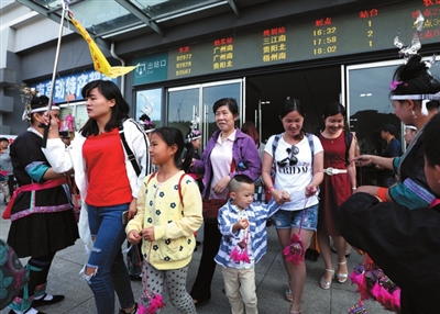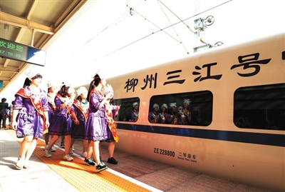 当前,珠三角地区的居民对绿色生态食材的需求日益增强。“柳州三江号”的开行,将让更多城里人品尝到“舌尖上的侗味”,吸引更多的游客到侗乡体验原汁原味的风情风光,使“高铁+”经济成为侗乡精准脱贫的“助推器”。