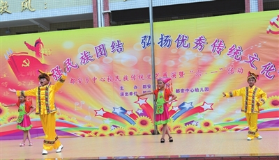 为了继续培养少数民族人才,传承民族民间传统艺术精髓。德保县都安乡中心校因势利导,将山水风光、悠久的民族文化、独特的民族风情引入学校教育,大力开展民族文化进校园活动。