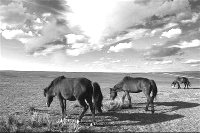 营地离敖包有近四十分钟的马程。走出五十米,就能基本掌握住骑术,再也不怕被摔下来了。稍把缰绳放开,马儿便在马师“嘚,驾!”的吼声中,一跃而起,越过稀疏芳草染绿的原野,狂飙奔腾。嘶鸣声和着风声,呼呼地朝草原深处挺进。马蹄“嘚……嘚……”地撞击着地面,迸溅出一串串快乐的音符,神化了所有的韵律。飒飒的风从耳畔呼啸而过,人似飘在天外。骏马的前蹄跃起,坐在马背上的人整个身体向后翻仰,与地面形成了四十五度角;骏马后脚抬起,马背上的我又随着马身向前扑去,与地面又形成四十五度角。骏马四脚腾空,飘飘然间,烦恼惆怅,功名利禄,在前俯后仰中,从心灵的城堡分离出来,随着跌跌撞撞的颠簸,落荒而逃。那不羁的情怀,留给这博大的草原来承载。