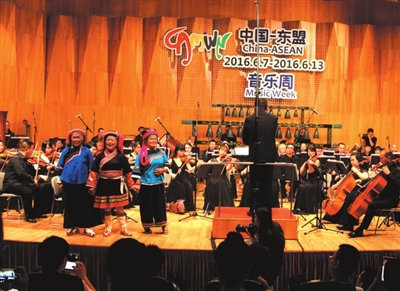 近日,笔者从刚刚结束的2016第五届中国-东盟音乐周盛会获悉,在中国-东盟音乐周盛会开幕式上,东盟各个国家展示了交响乐作品音乐。7部来自各个国家风格多样的交响乐音乐作品中,最后一部即:第六交响曲《Ai Ge Ai Wa》作品音乐,由广西著名作曲家钟峻程教授创作,采用了广西凌云背陇瑶最古老、最原始的“万疆贯——爱歌爱娃”歌调,以凌云背陇瑶民歌为素材,将凌云瑶族民歌手罗梅枝创作并演唱的歌曲《多彩瑶山》,韦金凤、腊庚银演唱的“酷音”共同运用在交响乐中。该部作品真实融入本土民族生态元素,极具广西少数民族特色。