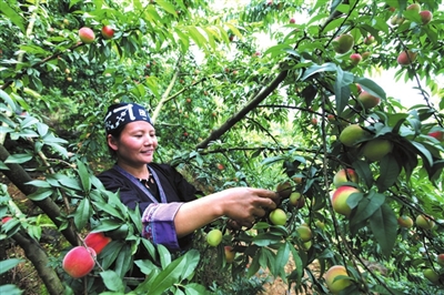 游客的增多,不仅带来了农家乐的蓬勃发展,还带动了屯里农产品的销售。潘福章对此感受颇深,“以前没有搞旅游,我们的鸡、鸭、鱼、水果的价钱不高也不好卖,经常都是留给自己吃。”以前禾花鲤卖几元钱一斤,现在一斤可以卖到30元至35元。此外,村里的千亩桃园因每年都吸引大量的游客来观光体验而成为“增收大户”,“今年每亩桃子产量有2000斤左右,扣除成本,每亩纯收入有2000元左右。有的村民种了10多亩桃树,一年就能增收2万多元。”潘福章感慨,桃园真是好,开花结果都有收入。