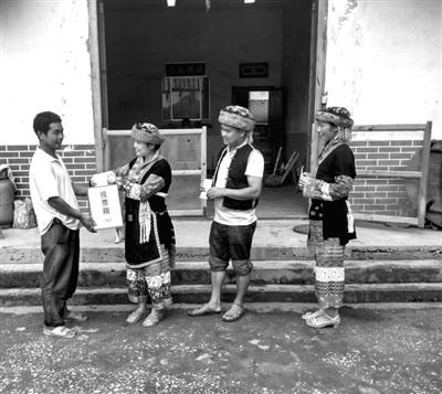 7月5日是恭城瑶族自治县县、乡人大代表换届选举日。据了解,该县此次选举选民共23.2575万人,设选区132个。为保证选举工作顺利开展,抽调969名工作人员到各选区全力做好投票选举工作。图为在换届选举日当日,工作人员拿着流动票箱来到西岭乡新合村,瑶族同胞为选出能倾听群众呼声、反映群众愿望的人大代表投下自己庄严神圣的一票。