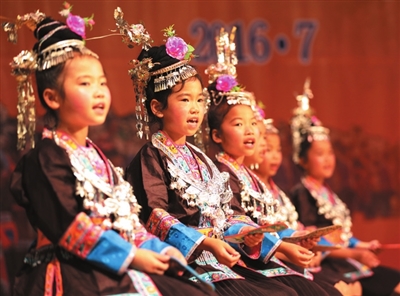 7月9日,三江侗族自治县在县城举办首届中小学民族文化体育艺术节,全县1600多名中小学生展示了多姿多彩的民族文化传统。近年来,该县全面推进素质教育,充分发挥学校在各村屯的优势,开设了侗族大歌、手工侗绣、侗族农民画、民族舞蹈及侗族器乐等“非遗”项目兴趣班,在丰富了学生第二课堂内容的同时,也使侗族精品文化获得了传承。