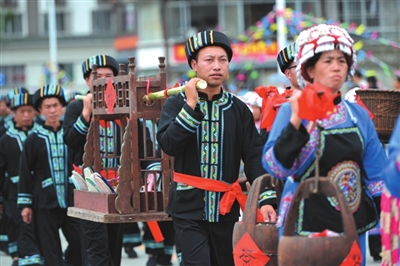 百家宴。在县城民族风雨桥上,宾朋满座,共同举杯,开怀畅饮,欢庆节日。只见富有龙胜特色风味的菜肴摆满了长长的宴席,200多米长的民族风雨桥已经坐得满满当当,四方宾朋围坐在一起互敬“同心酒”“连心酒”“齐心酒”,欢乐的敬酒歌回荡在桑江河畔。