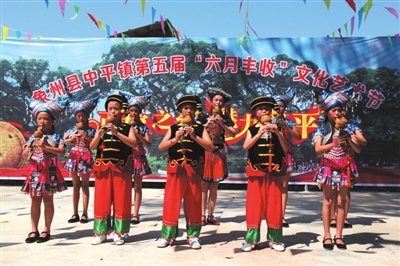 “浑水摸鱼真过瘾,挑水比赛用力拼;抛圈套瓜兴趣高,现场绘画创意新。”7月8日至9日,象州县中平镇第五届“六月丰收”文化艺术节隆重上演,儿童现场绘画、斗鸡、掰玉米、扛肥料、挑水、浑水摸鱼、抛圈套瓜、抛圈套鸭和竹竿舞表演等一系列精彩纷呈的民间表演让村民与游客叹为观止,大饱眼福。