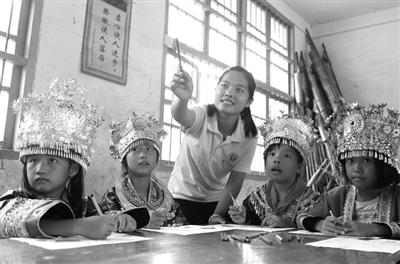 连日来,河南安阳师范学院“焦融育苗”广西支教团的大学生在融水苗族自治县白云乡归正小学支教,教苗寨小学生画画、音乐,指导他们复习功课,还与小学生一起玩游戏,让苗寨里的小学生拓宽知识,度过愉快的假期。闲暇之余,支教大学生还帮助当地农民收割稻谷、插秧等。