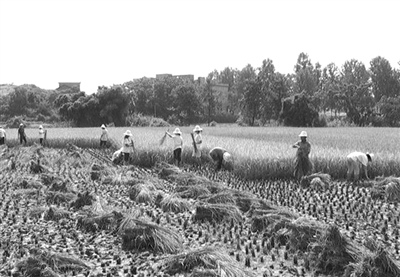 正是艳阳高照,地上像着了火,我们的热情比太阳还要高涨,风风火火地往田里赶,齐刷刷的稻子没过了十来岁孩子的头。一踏进田里,那浓稠的泥浆从脚趾缝间吱吱冒出,敷到脚掌,凉丝丝的,不再想什么,一挥镰刀,哗啦啦地割着稻谷,赶着时间把这金灿灿的稻谷搬回家。大人把打谷机安放好,抱来束束稻谷,喂进滚滚转着的脱粒机,哗哗哗,像下雨似的,谷粒纷纷落到已经垫好的薄膜上。边上一个人在努力捞着,用筛子上下簸着,然后把谷粒装进袋子里,胀鼓鼓,堆到田坎上。
