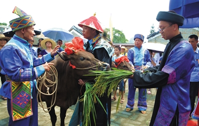 今年7月9日是农历六月六,也是壮族同胞的传统民俗节日“尝新节”,广西忻城县在莫土司衙署景区大夫第内举行六月六“尝新节”暨土司农耕文化民俗展演活动。活动以“土司劝农”古装实景演出、壮族服饰及农具展示、抛秧互动游园活动等方式进行,让游客们在体验壮族农耕文化中与壮族胞共庆佳节。