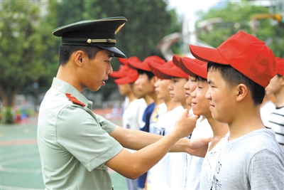 8月22日,融水苗族自治县融水县中学校园内,高一新生正在进行军训。当天,融水中学1067名新生迎来开学军训第一天,这些90%以上出生于2000年后的新生也正式开启了他们的高中生活。(韦鼎标 摄影报道)