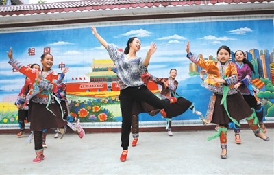 石祝瑛的歌舞青春在大苗山深处飞扬,山里娃的快乐得到绽放。在她的努力下,昔日一些性格孤僻的留守儿童,学会了发声、乐理、节奏,学会了劈叉、下腰,甚至芭蕾组合等。如今,合唱团已能较像样地演唱《歌唱祖国》《中国少年先锋队队歌》和《吹起芦笙唱起歌》等歌曲,舞蹈队也可以在众人面前大方地表演《苗歌》《苗岭的早晨》等有苗族特色的舞蹈。(龙 涛 摄影报道)