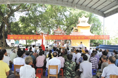9月22日,南宁市民宗委在上林县镇圩瑶族乡排红村排岜庄举行宗教界扶贫济困暨2016年 “宗教慈善周”活动启动仪式,南宁市委常委、统战部部长赵红明出席仪式并讲话,市民宗委主任苏志刚,市佛教协会、市伊斯兰教协会、市天主教爱国会、市基督教三自爱国运动委员会、市基督教协会5个市级宗教团体负责人和部分宗教活动场所负责人参加启动仪式。