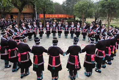 在各个校园,老师带学生,家长带子女,大手拉小手,广泛组织开展芦笙舞、侗族大歌、侗族耶歌、侗戏表演、民族团结主题演讲等民族文化进校园活动,让民族传统文化在校园中传承与弘扬,让民族团结之花在校园中绽放异彩;在广大乡村,以节庆文化、楼桥文化、讲款、百家宴、月也、侗戏苗戏、多耶、芦笙踩堂、侗族大歌等为载体,掀起民族团结文化进村屯、创建活动进村屯的热潮;在机关、在企业、在社区,广泛开展创建文明机关、文明学校、文明社区、团结社区、文化社区等活动,干部群众精神面貌焕然一新。