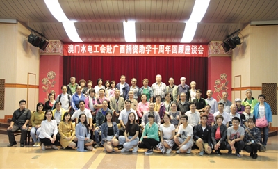 10月29日下午,澳门水电工会赴广西捐资助学10周年回顾座谈会在南宁举行。自治区教育厅民族教育处处长韦兰明,自治区总工会对外联络部部长李义勇,澳门水电工会捐资助学交流团以及在南宁读书、工作的部分受助学生代表等参加座谈会。