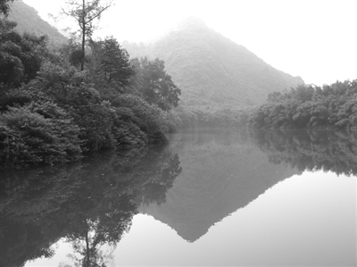 游船行进在江中,把平静的水面划开,形成阵阵涟漪。涟漪在碧波上散开并向岸边扩散,随着扩散的涟漪望去,岸上的风景也就映入眼帘。前进的水路,跟进的画廊,蓝天下的岸崖,山青映着碧水,可谓是天连水来水连天。游船于三江口转进下枧河,音响适时传出动人的歌声:“我爱刘三姐门前那条河,滔滔江水荡清波……”哦,原来到了刘三姐家乡的那条河,美丽的下枧河,生出歌仙刘三姐的地方。下枧河两岸青山如黛,河水澄碧,幽静恬淡,犹如现代桃花源。她美,美得让人心颤,难以忘怀;她幽,幽得只闻鸟语水咽,再无杂音;她名,名在刘三姐的身份,“话说广西成歌海,都是三姐亲口传。”这就是流传在广西的赞颂歌仙刘三姐的山歌。刘三姐是歌仙,已经成了家喻户晓的故事。而刘三姐的故乡就在这下枧河边的下枧村,于是到刘三姐故乡去感受一下歌仙家乡的美景,也就成了人们向往之事。