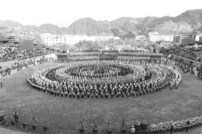 据了解,今年雷山苗年活动以“政府引导,企业主办,群众参与”的形式进行,由雷山县苗学会和西江千户苗寨文化旅游发展有限公司主办,共有十七项活动,时间持续1个月。图为雷山“苗年”开幕式。