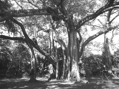 透过这成片的绿色,我看到了气势磅礴的绿——独木成林。这种独木成林的景象在云南并不少见。这里雨水充沛,温暖如春。人们喜欢绿树,与绿树为伴。老树就是人们传说中的树神,忠诚地保护着这片土地,佑护人民的安康。人们感激着树精的佑护,精心呵护它,不让任何人去伤害它。这就是这片土地上的人们与大自然和谐相处的最佳佐证。绿之魂,深深地融入了人们的心灵深处。两者融为一体,人和树才如此相亲相爱。