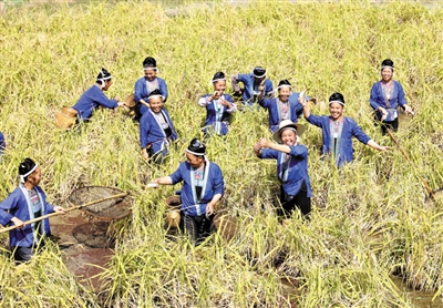 金秋,百里侗乡的田野里稻香鱼肥。秋日里,在三江侗族自治县林溪镇高秀村的田间地头响起了阵阵欢声笑语。田间游客们捉住一条条肥硕的稻鱼兴奋不已,田边烧得正旺的火堆旁烤着的鲜鱼香味飘出,田埂上身着节日盛装的侗族姑娘那天籁般的歌声令游客如痴如醉……自10月22日三江高山稻鱼文化节开幕以来,吸引众多游客深入侗寨体验稻田抓鱼烤鱼、品味全鱼宴、欣赏民俗歌舞表演,旺了乡村旅游,让村里的高山稻鱼、高山鱼稻等生态健康食材足不出村便能销售,帮助群众增收脱贫。