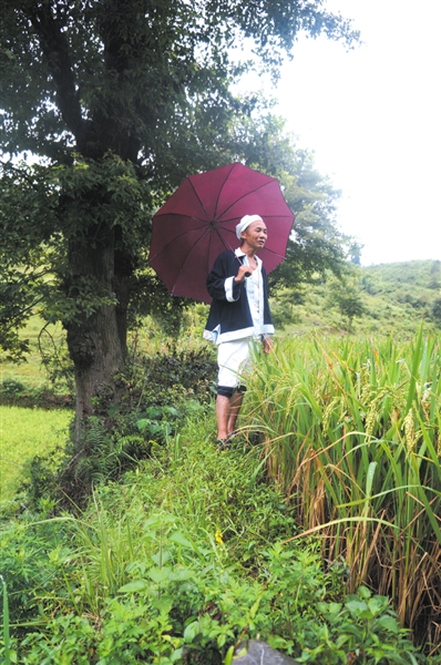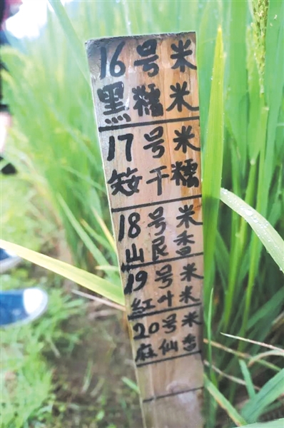 2015年,广西水稻研究所的科研人员到南丹的实验基地选种时,让黎友明自己下田选自己喜欢的品种,他一口气选了15个,加上去年泰国“米之神”基金会赠送给他的适合广西种植的8个品种,这样一算下来,到2016年,友明叔这“墙中田”一共种了35个品种:包括横县的三油粘和白香319、红壳糯米,四川的黑米、融水的红米、怀里“桂青”、泰国“米之神”基金会的8个品种、么另屯3个糯米老品种、广西水稻研究所试验田自选的15个品种,外加自己试验一粒米去壳育种“再生稻”,友明叔的实验田俨然成为一座活生生的“活态种子基因库”!