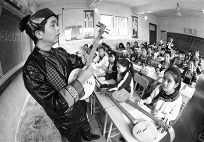 12月8日,在贵州省榕江县古州镇车江民族中学,老师杨秀木在为学生讲授侗族琵琶歌弹奏技巧。近年来,贵州省黔东南苗族侗族自治州榕江县将侗族大歌、侗族琵琶歌等引进中小学课堂,让广大青少年从小学习、传承好民族传统文化。