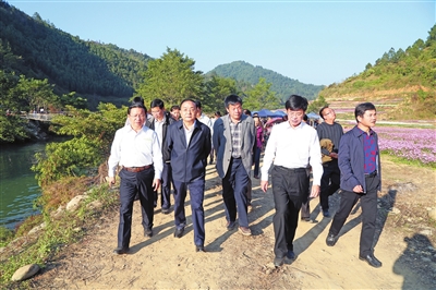 7日下午,李昌平一行到靖西市考察了新靖镇旧州少数民族特色村寨和民族传统手工艺品。李昌平认真询问了村寨规划建设、配套产业发展等情况。他指出,少数民族特色村寨建设与保护,一定要高起点规划、高水平建设,坚持以特色村寨为体、民族文化为魂,农旅结合、文旅融合,要把特色村寨保护与发展纳入当地经济社会发展总体规划,通过特色村寨建设,促进民族地区经济社会发展。