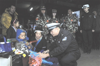 12月16日,柳州市公安局交警支队与柳州交通广播组织社会爱心人士、爱心团体开展爱心助学活动,走进大山深处的三江侗族自治县同乐苗族乡净代小学、良口乡滚良小学两所学校,为这两所学校捐赠了电脑、书籍、书柜、文体用具、棉被等爱心物品,还给20名特困生分别捐赠了600元的爱心助学金。交警和志愿者一行人还走访了贫困学生家庭。同时,进行交通安全知识宣传活动,通过做示范、玩游戏等方式向同学们讲解平时应该注意的交通安全问题及各类交通标志。