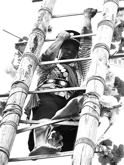 12月20日,“2016年怒江傈僳‘阔时’文化旅游节”系列活动在云南省怒江傈僳族自治州泸水市六库镇举行。当地数万少数民族群众身着节日盛装,载歌载舞、欢聚一堂。图为当日演员在庆祝大会上表演《上刀山》。