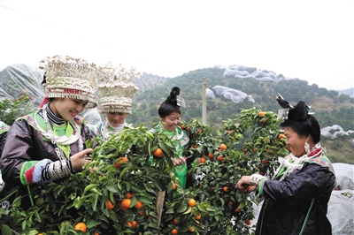 1月10日,环江毛南族自治县思恩镇陈双村双乐苗寨的苗族同胞在开心的采摘沙糖橘,准备装车发往广东、湖南等地。近年来,该县不断优化产业结构,采取 “公司+基地+农户”的发展模式,带动毛南族、瑶族、苗族、仫佬族、汉族等各族群众种植沙糖橘4万多亩,年挂果约1500多万斤,群众卖果收入达5350多万元,沙糖橘成为群众增收致富的“甜蜜事业”。