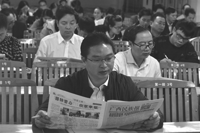 1月5日,巴马民师召开中职教育教学全员培训会。按惯例,会议的开头,一般要进行政治思想方面的学习和教育。黄正杰校长便安排人员发放刊登有《一次难忘的接见》一文的《广西民族报》,近80位教师,人手一份,他自己拿着一份,在讲台上隆重地介绍该文的来历和重要意义,激发老师们阅读和学习的兴趣,意在让大家进一步了解巴师的历史,感恩革命前辈,增强自信,汲取力量,开拓前进。蓝必亮副校长(瑶族)“身先士卒”,带头阅读,大家也都跟着纷纷打开报纸阅读起来。