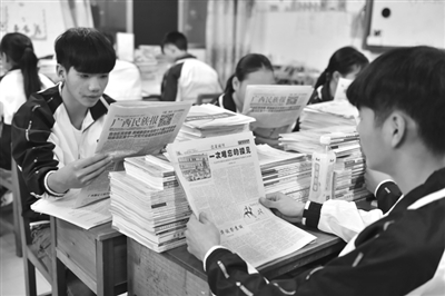1月6日,2016级旅游高中综合班11班近60位同学在班主任韦道杰老师的组织下,怀着无比崇敬的心情一起诵读《一次难忘的接见》,充满感恩之情的读书声在教室里回荡。读罢,有位同学说:“我们熟背了毛主席那首七律《长征》,很佩服红军,今天读了这篇文章,知道覃应机就是英勇的红军,还是我们老乡呢,厉害!厉害!以后《广西民族报》要多发表这种文章,说不定会冒出更多这样的老乡来!”