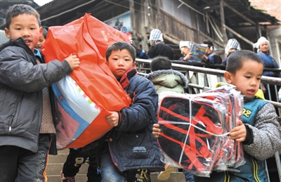 1月13日,柳州市阳光爱心团到三江侗族自治县老堡乡老巴村小学献爱心,向全校师生捐赠棉被、棉衣、书包等价值近6万元的爱心物资,为深山侗寨的孩子们送去了冬日温暖。