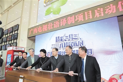 据介绍,广西电视台优秀电视作品壮语译制项目,是广西新闻出版广播影视“壮族三月三”工程的重要组成部分,该项目内容为使用壮语标准音译制8集电视动画片《百鸟衣》和38集电视连续剧《冯子材》,以及首次使用靖西方言译制12集电视动画片《大战人熊婆》,其译制数量、种类和长度都是广西电视台历年之最。