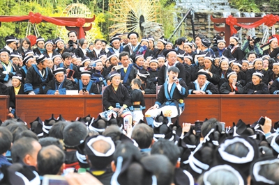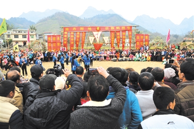 2月6日,南丹县吾隘镇那地村壮族群众举办一年一度的蚂拐节。据悉,“蚂拐”是壮族群众对青蛙的俗称,是壮族崇拜的图腾。壮族“蚂拐节”主要流行于河池市红水河流域的南丹、 天峨、东兰等县,每年春季,这一带的壮族群众都会举行“蚂拐节”活动,其基本过程为找蚂拐、祭蚂拐、孝蚂拐和葬蚂拐。通过祭祀蚂拐,祈求年年风调雨顺,岁岁五谷丰登,四季人畜兴旺。2006年壮族“蚂拐节”已经被列入国家非物质文化遗产保护名录。