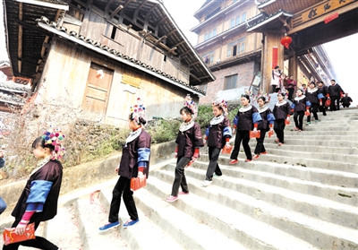 “我正月初一就和妻儿坐动车到程阳八寨住下,这几天看了百人纺纱、民俗表演,参加了百家宴,还观赏了新娘挑水、侗族喜酒和新娘回门等,觉得特别过瘾!”特地从桂林市全州县赶来程阳景区体验侗族婚俗活动的游客王滋创告诉笔者。