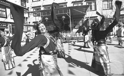 “社区干部组织大家聚在一起,特别热闹,大家都说,现在的生活真幸福!”74岁的阿坝林卡社区群众琼达说,“我们发自内心地感到,是党和政府给了我们今天的幸福!这样的日子,怎么都过不够。”