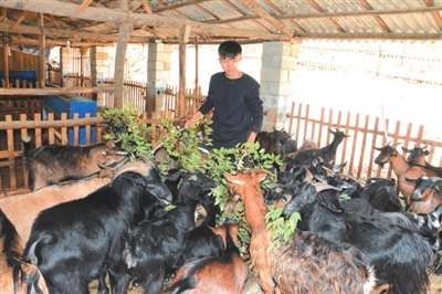 蓝俊仑是镇圩瑶族乡佛子村人,今年只有24岁,早在青少年时期,他就萌生了在家乡创业,带动家乡父老一起脱贫致富的念头。2014年7月大学刚毕业,他就怀揣“要做致富带头人”的创业理想毅然返乡养羊。依托家乡良好生态,经过两年多的打拼,蓝俊仑在瑶乡佛子村旁建起350平方米的羊圈,存栏山羊300多只。最让他感到自豪的是,他刚成立的黑山羊养殖合作社已吸收建档立卡贫困户12家,田家勤就是其中一户。