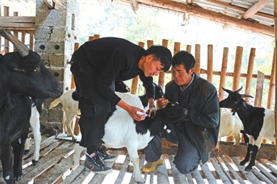 当天下午,蓝俊仑将羊圈里适合防疫的60多只山羊全部打完防疫针,一直忙到傍晚时分,才驱车赶回了山下近十公里远的家。