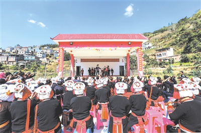 图为该县潞城瑶族乡丰防村群众春节期间在新戏台演出的情景。