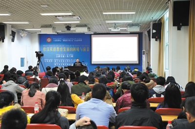 壮汉双语教育发展的困境何在?韦兰明介绍壮汉双语教育经历五个阶段——壮文初创试教期、壮文进校试点期、壮文进校调整期、壮汉双语教学实验期、壮汉双语教育发展期之后,指出了当前壮汉双语教育发展有“四困”:即认识阻力之困、保障乏力之困、人力欠缺之困、财力不足之困。如何才能冲破困境?韦兰明结合自身丰富的教育管理工作经验和对壮汉双语教育发展的独到见解做了剖析和总结:壮汉双语教育发展脱离不了创新壮文推广使用的社会环境,重要前提是增强壮族文化认同感,关键环节是把握教育和语言文字发展规律,基本思路是科学规划,分步推进,改革创新机制,激发壮汉双语教育活力等。