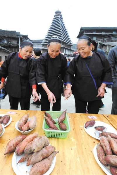 高秀村地处‘湘桂百里侗族文化长廊’中心地带,是桂、湘两地侗族文化的交汇点,具有优秀的歌舞文化、祭祀文化、美食文化、稻作文化及社交文化等原汁原味的侗族传统文化,何不趁此机会邀请周边村屯来‘月也’,以红薯、韭菜为媒,打包展示一下高秀的浓郁文化和生态农产品?村干们一拍即合。2012年,以“一村一品”为名,高秀村首届红薯文化节一炮打红,“高秀红薯”自此走出深闺让人识,令村民们畅享了丰收的喜悦,红薯种植规模也逐年扩大。2016年,该村共种植红薯82亩,亩产量高达1500斤,产值30余万元,高山红薯已成为该村脱贫增收的“金钥匙”。