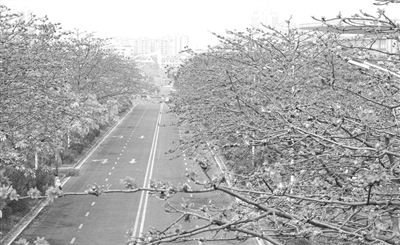 记得第一次见到你时,你只是一株小小的木棉树,像一个娇羞的小女孩,孤独地夹在人行道上,旁边是绿叶浓阴的大树。我惊叹于你生命力的顽强,在钢筋水泥的包围中,已经出落成一个亭亭玉立的大美人,枝头花束红艳多姿,朵朵婀娜饱满,引得路人赞美无数。