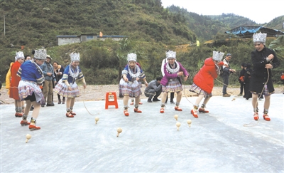 当天早上,一场独具特色的少数民族歌舞表演拉开了庆祝活动的帷幕,那坡县金秋艺术团、吞力黑衣壮文艺队、规弄瑶族文艺队、中山村壮族文艺队等先后登台表演了极具民族特色的舞蹈、山歌对唱等节目,精彩的表演赢得了观众的阵阵掌声。接着进行的跳竹竿、打陀螺、抛绣球、走高跷等壮族文体活动,让游客与村民互动,整个现场充满了欢乐的气氛。最后的请仙活动,从去庙里祭拜到请花仙女下凡赏花对情歌,都是以唱山歌为主旋律,充分展示了边关传统民俗文化的风采。同时,在活动广场周围还摆满了壮乡糍粑、豆腐花、五色糯米饭、汤圆等壮族美食、手工小吃,各色美食随风飘来阵阵的芳香,引得游客们前往品尝。