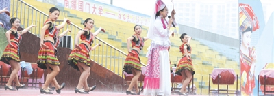 据王杰清介绍,为进一步推进“民族文化艺术进校园”工程,在大学和小学两个不同阶段的学校,将壮族三月三节庆与校园民族文化艺术结合起来,做到传承民族文化艺术从娃娃抓起,深入挖掘民族风俗和弘扬民族文化艺术。广西民族师范学院、南宁市明秀小学有着不同阶段的教育环境,这两所学校在全区院校中民族文化底蕴较为深厚,民族教育方面取得的成绩也较为突出,他们从参与体验式教学、运用情景式教学、采用研讨式教学,到设计各民族元素融入校园环境等方面,挖掘和弘扬民族文化艺术均取得很好的效果。组委会选择在这里举行校园民族文化艺术节,就是要大力宣扬他们的超前理念和先进经验做法,宣扬那种根植于他们心中对民族文化艺术的热爱,激发不同阶段学子、挖掘、弘扬、保护和传承民族文化艺术的激情。