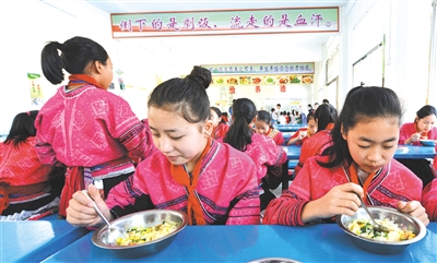 龙胜各族自治县于2012年被列为国家实施农村义务教育学生营养改善计划试点县,近年来,该县着力改善学校的供餐条件,严格按照营养膳食补助每生每天4元的标准,较好地解决了偏远山区孩子在校吃饭难、营养差的问题。