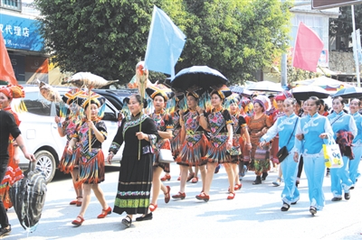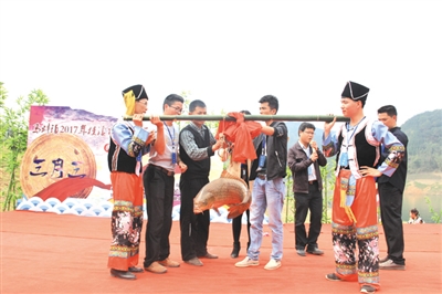 民族风情推进乡村旅游。3月30日至4月1日,古障镇那哈村落沙屯以“三月三”节庆为契机,组织各族群众喜迎八方来客。活动中通过提升游客参与度,让本地壮、汉、苗、彝等4个民族的特色风俗成为新的旅游吸引点,使民俗活动直接转化为群众的切实收入。“‘两天一夜’的活动,除了吸引了县城和周边隆林、云南省广南县的客人,还迎来北部湾畔的钦州、北海等地的民俗爱好者。活动包含了达体舞、左脚舞、竹竿舞等民族舞蹈比赛,丰富了乡村旅游的内涵,使‘你不是来旅游,你是回家!’的品牌打造有了新的拓展。”该村支书、村民委主任杨顺光告诉笔者,仅有60多户人家的落沙屯去年12月份以来仅乡村旅游吃、住、玩等几项收入就有近万元,来自屯内的舞者、厨师、交管员、管委会成员、农宿管理员、活动主持人均尝到了乡村旅游的“甜头”,其中“冠军”一户名为韦拾妹农户,收入976元。