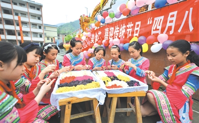 5月2日,龙胜各族自治县马堤民族小学举办第二届“糯香美食文化节”活动。全校师生欢聚一堂,一起现场烹制民族特色小吃、品尝五色糯米饭、水果拼盘比美、班级美食评比、欢跳竹竿舞等活动,师生们在欢歌笑语中喜迎传统节日“四月八”。